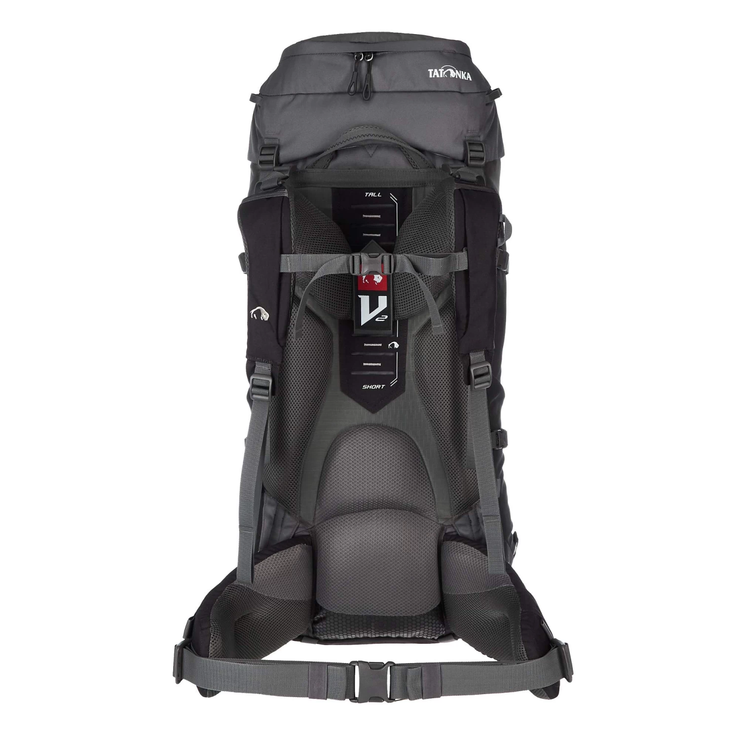 Mit dem V2-Tragesystem schulterst du mittlere bis hohe Lasten komfortabel und kannst dich dabei auch noch sehr frei bewegen. Möglich wird dies durch mehrere speziell angeordnete Stäbe, welche die Lastenübertragung effizient umsetzen, ohne die Flexibilität einzuschränken. Strategisch gesetzte Polster lassen Platz für Luft und gewähren einen guten Körperkontakt. Der ergonomisch ausgeformte Hüftgurt gewährleistet optimalen Halt ohne zu verrutschen und ist in zwei Richtungen anpassbar. Auch hier stabilisiert ein Stab den Sitz. Die Schultergurte kannst du äußerst großzügig in der Höhe verstellen und über die Lastenkontrollriemen den Sitz perfekt an dich anpassen.